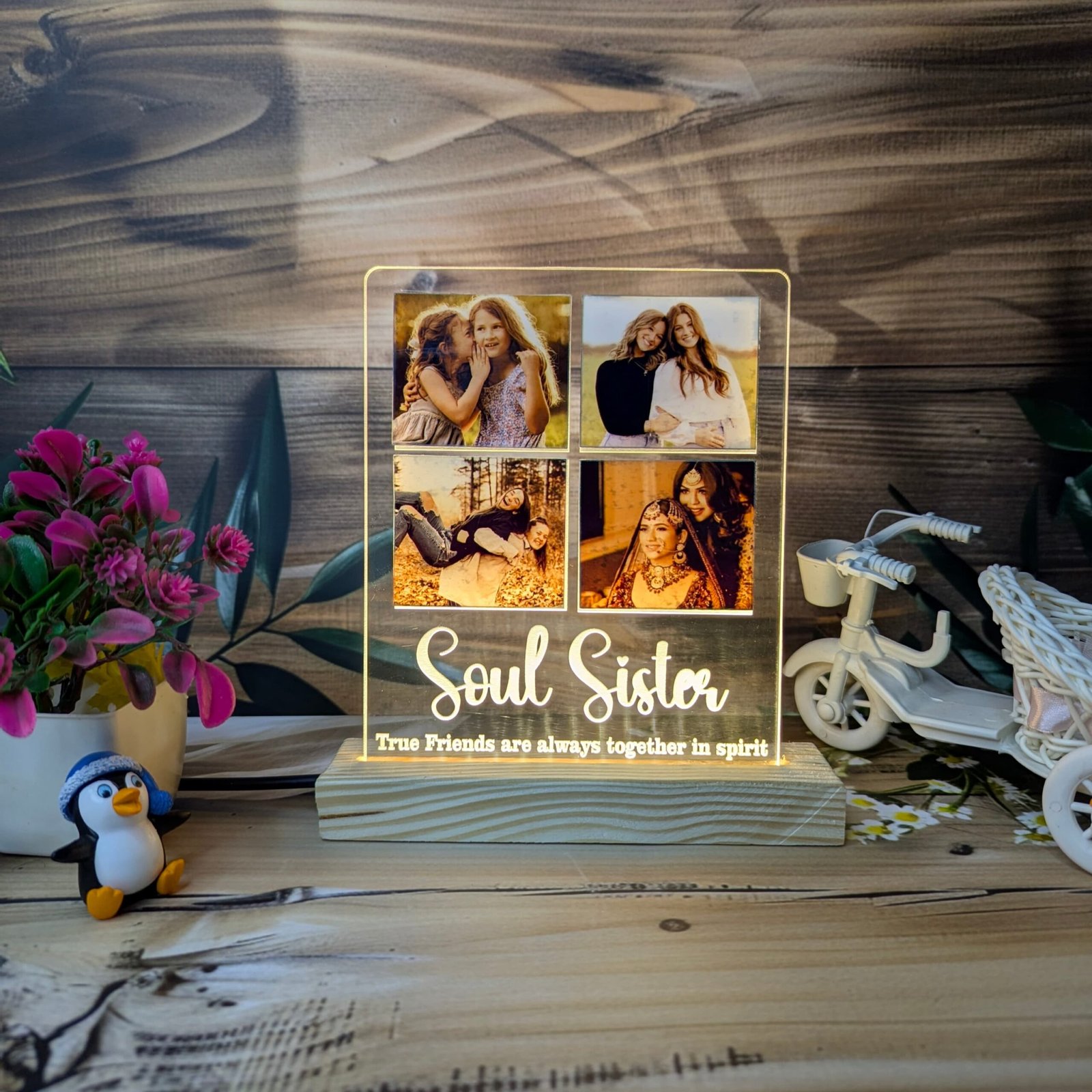 Give your best friend a gift that truly reflects your special bond. Order your “Soul Sister” Personalized Photo Collage LED Night Light today!