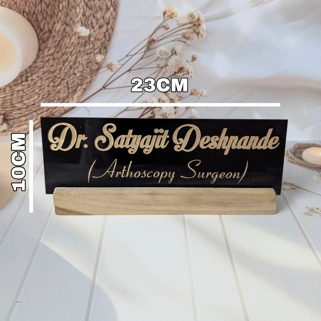 Make your mark with a personalized professional desk standee. Customize it with your name and title, and optionally include your company logo for enhanced branding. A stylish addition to any office environment.
