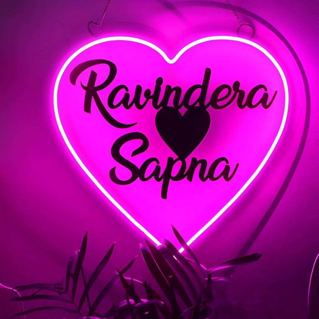 Names in a Heart Neon Sign – Modern Couple Decor