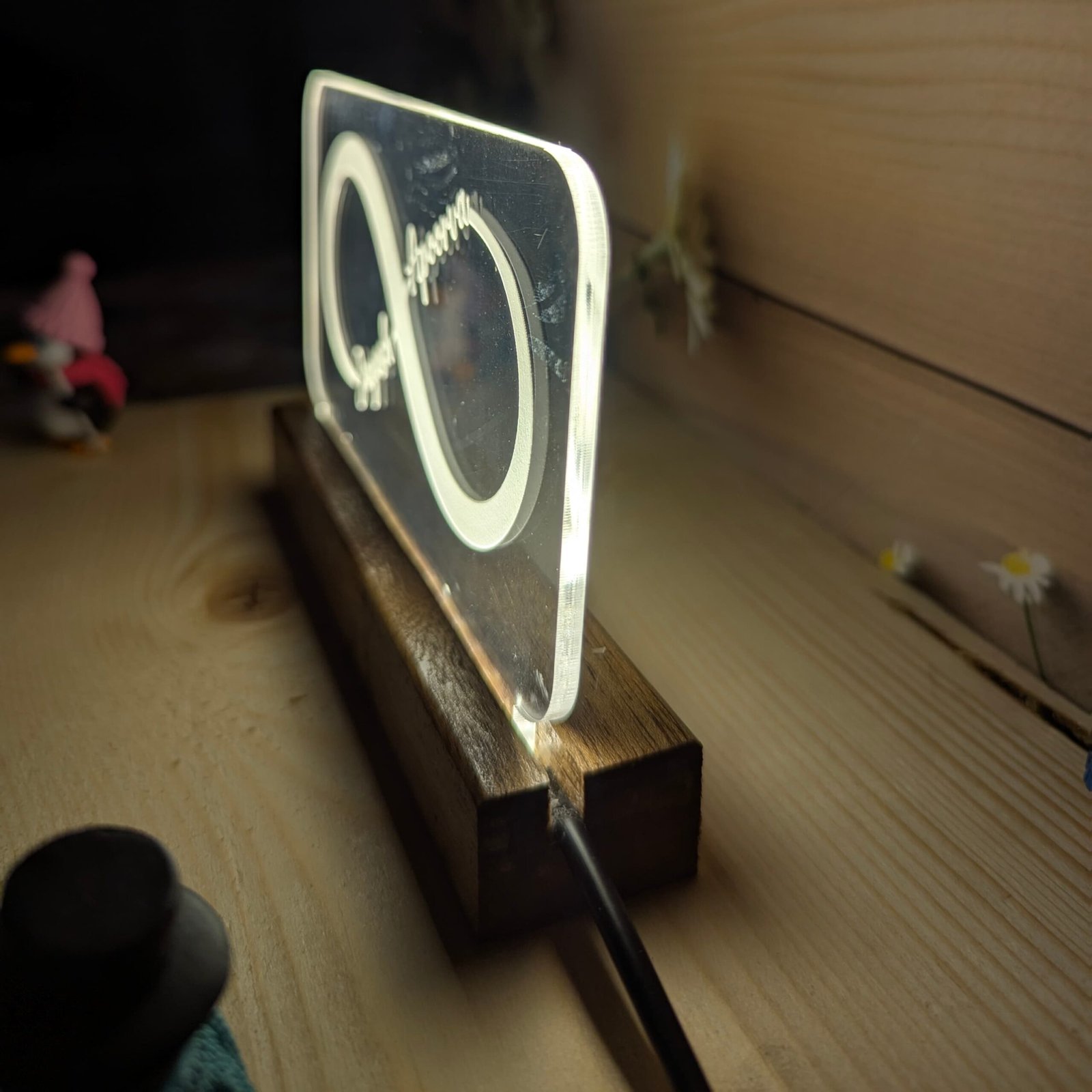 Personalized Acrylic Infinity LED Lamp with Wooden Base