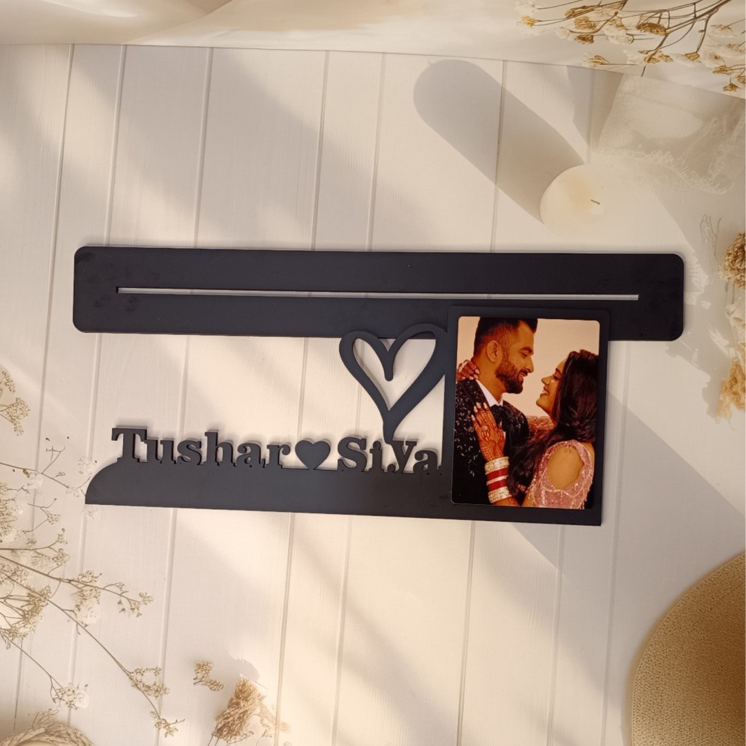 Our standy photo frame offers a personal touch that speaks directly to the heart. By integrating your photo and names, this frame transforms into a unique keepsake that tells your story. Whether you’re presenting it as a gift or using it to enhance your home décor, the combination of custom features and sleek design makes it a meaningful addition to any space.
